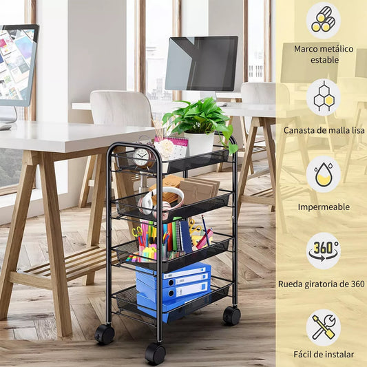 Carrito Organizador Multiusos 4 Niveles Metálico Con Ruedas