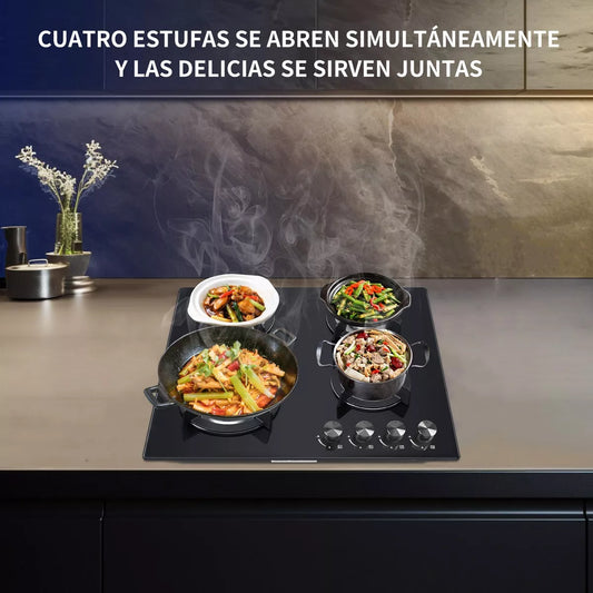 Estufa Gas LP Empotrable 4 Quemadores Vidrio Templado Color Negro