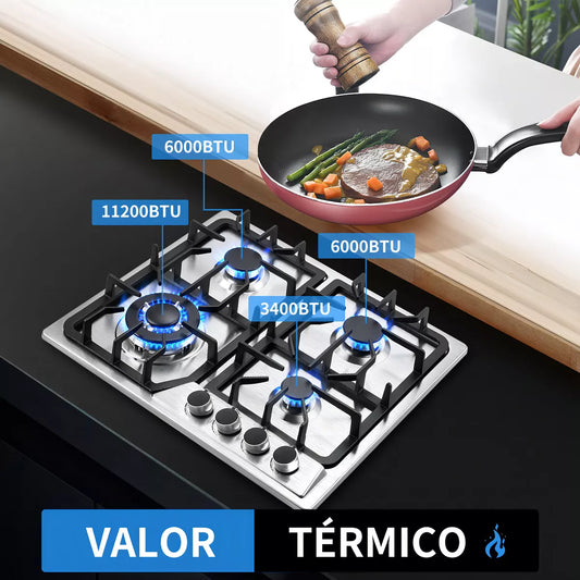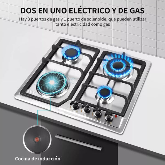 Parrilla 3 estufas de gas y 1 estufa eléctrica Empotrable Acero Inoxidable