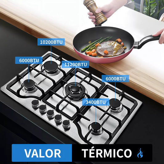 Parrilla Estufa De Gas Acero Inoxidable 5 Quemadores Cocción Color Plateado