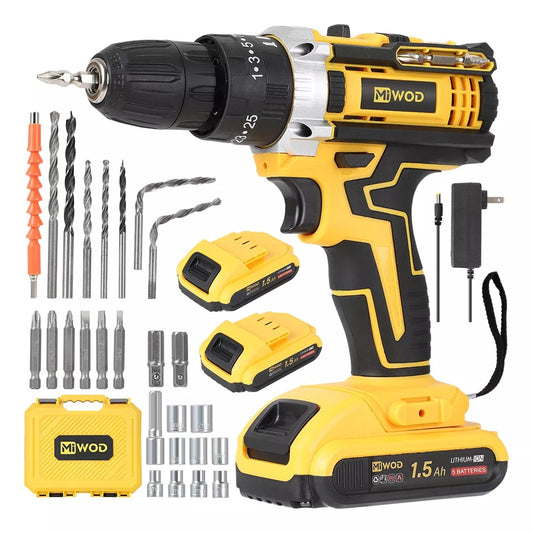 Taladro Inalambrico Amarillo 2 Baterias Redondas