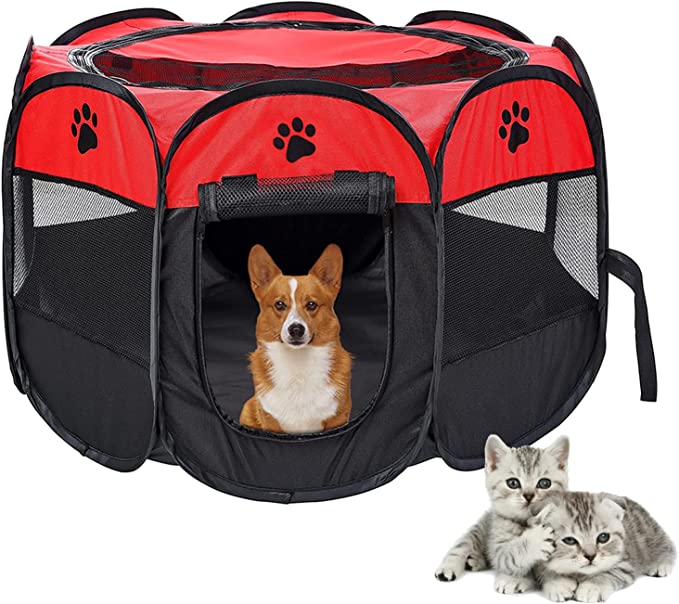 Diseño Plegable: Fácil de almacenar y usar, portátil. Adecuado para viajes al aire libre y uso doméstico para mascotas. El tamaño desplegado es de 91*91*58cm, adecuado para refugios temporales para la mayoría de las mascotas pequeñas.