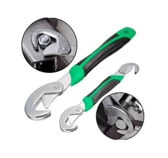 -Lave universal Multiusos con 2 piezas -Largo 28 cm y 21 cm -Llave Múltiple para aflojar y apretar tornillos, tubos, pernos etc. -Para tubos redondos, hexagonales y cuadrados -Permite realizar trabajos incluso en espacios reducido